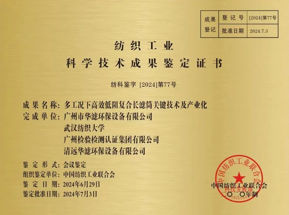感谢中国纺织工业联合会领导及本次科技鉴定组的技术专家对j9九游会老哥俱乐部交流区环保“多工况下高效低阻复合长滤筒关键技术及产业化” 项目肯定。此次获奖标志着j9九游会老哥俱乐部交流区环保研发成果成功落地,不仅填补了国内行业空白,打破国外技术封锁,还为我国工业节能降碳技术向高端化发展提供了有力支撑,对推动环境空气质量持续改善具有重要意义。